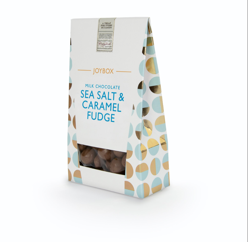 Sea Salt and Caramel Fudge coated in Milk Chocolate. 150g box