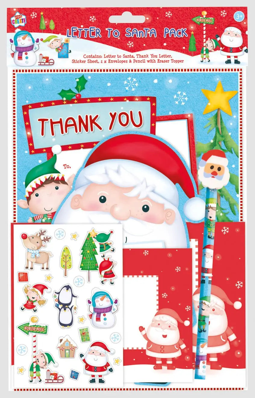Let the magic of Christmas begin with the Letter To Santa Pack! This pack contains everything you need to compose a letter to Santa and includes a thank you letter and sticker sheet. Plus, get two envelopes and a pencil with an erasure topper for a fun holiday writing experience. Make this season even more special with the Letter To Santa Pack!