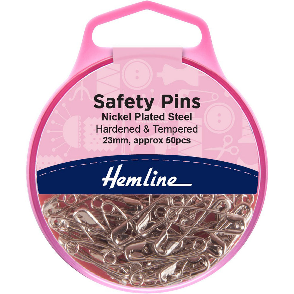 Hardened and tempered quality safety pins in a useful closable storage box.