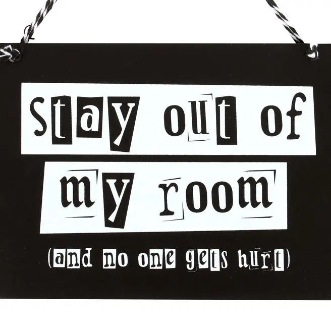 This Stay Out of My Room Sign is an essential home accessory for those living with nosy siblings, parents or roommates. With its straightforward message of "Stay out of my room (and no one gets hurt)", this hanging sign is perfect for keeping unwanted intruders out.