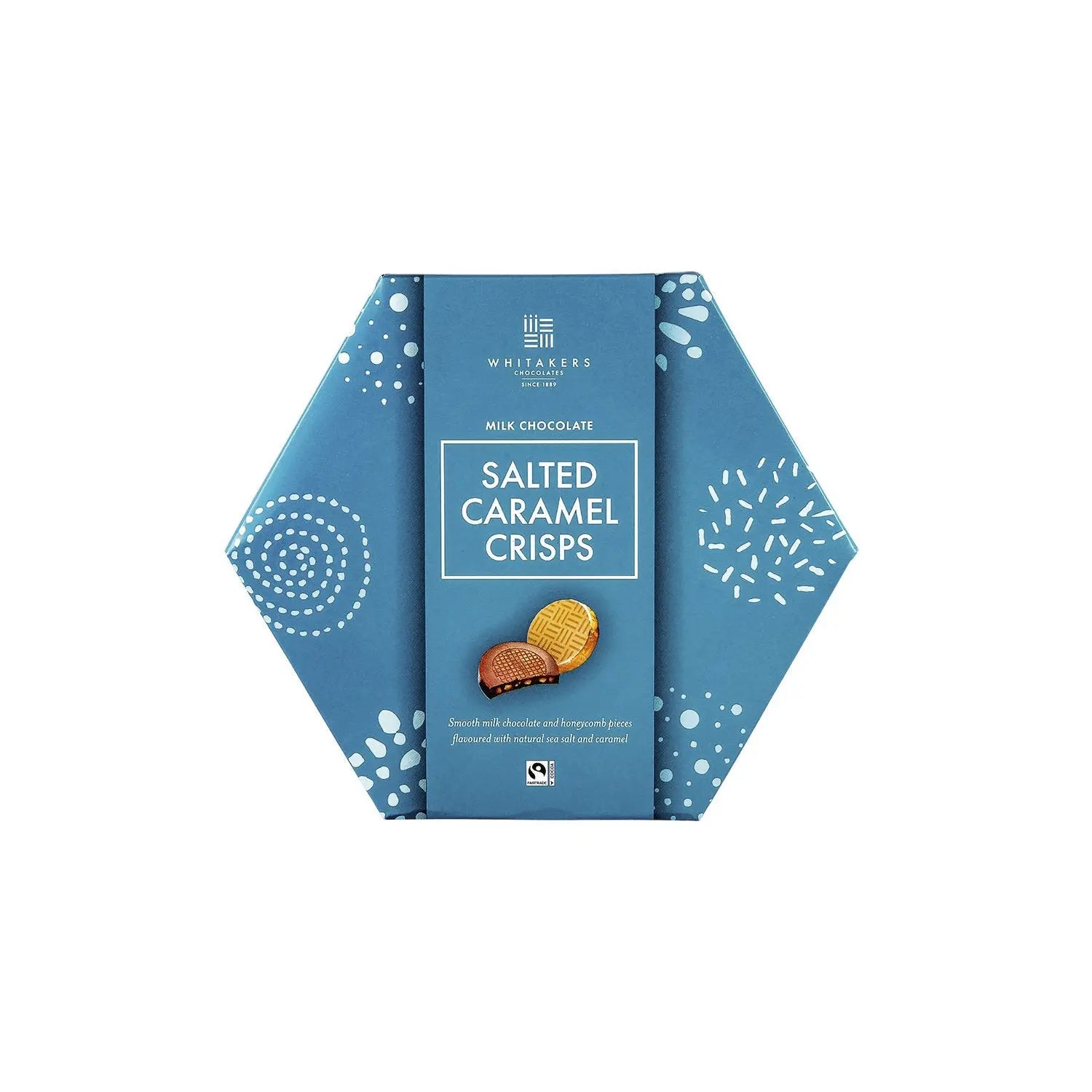 Whitakers foiled milk salted caramel honeycomb crisps in hexagon box -165g