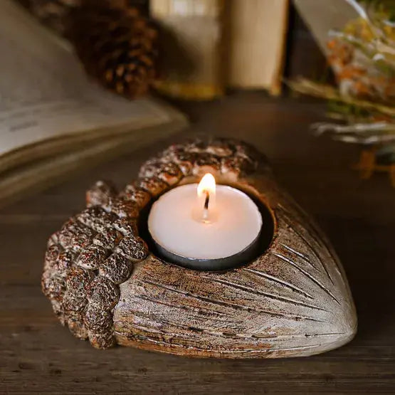 Wood Effect Resin Heart Shaped Acord Candle Holder